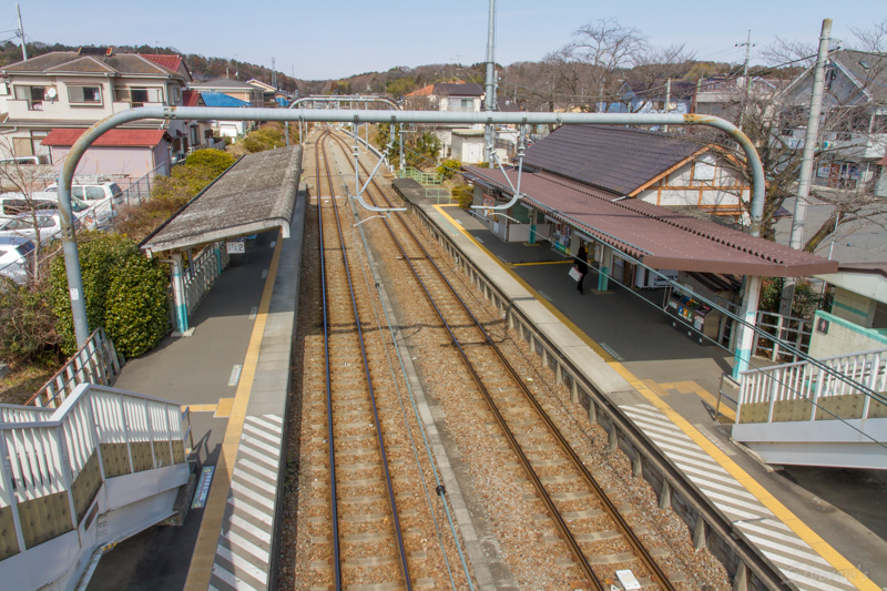 鎌倉方ホーム端近くより駅舎、藤沢方を撮影。