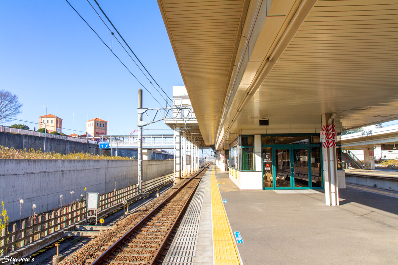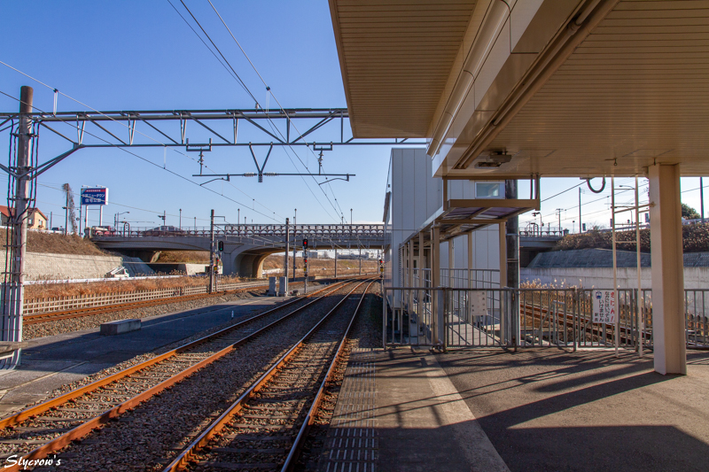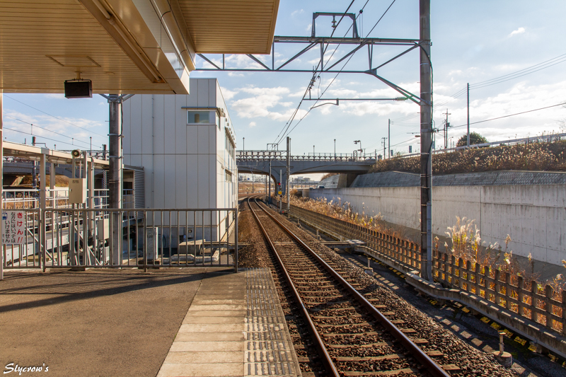 掘割状の地平ホームで、南側の1,2番ホームは上り小室方面。内側の2番が待避線となる。平日上りで7時台は10本の電車があるが、11時、13時は2本のみ。21時台には遠く三崎口行きも。