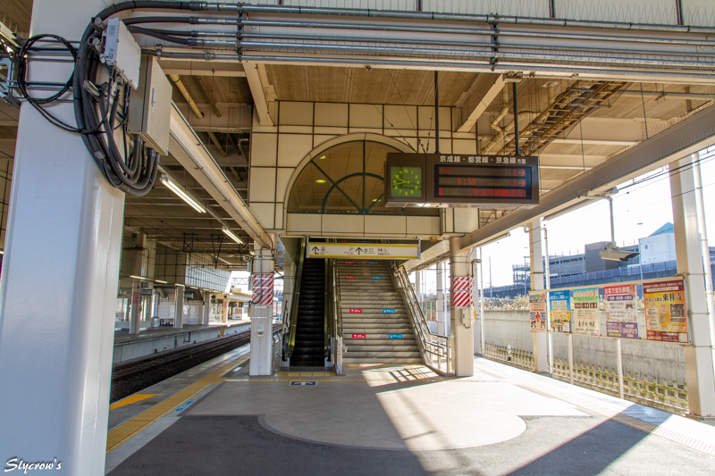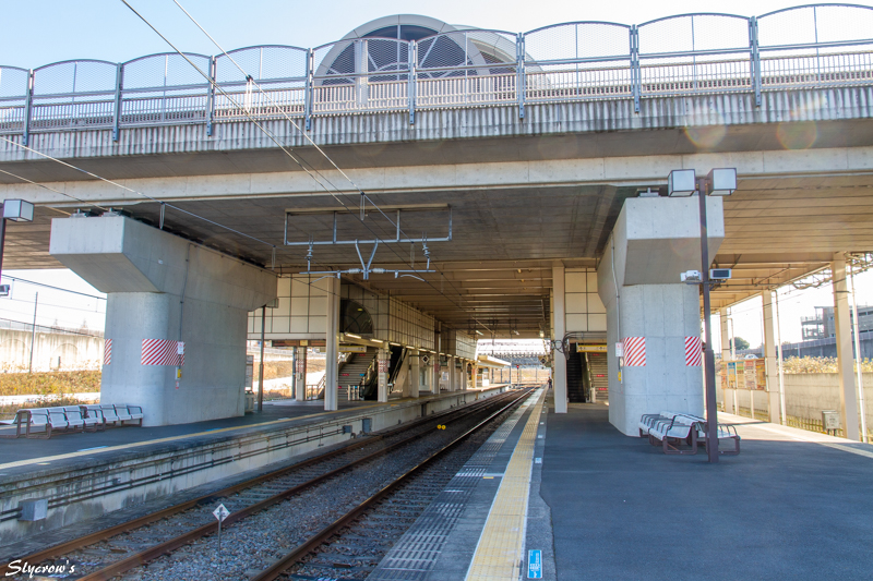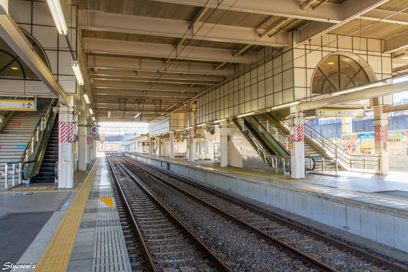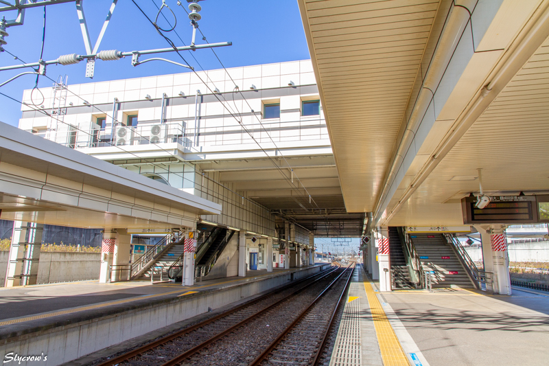 下りは3番が待避線。平日下りは22時台の5本が最多。ベッドタウンの駅らしく、終電も0時42分。日中は毎時3本のダイヤでのんびり。
