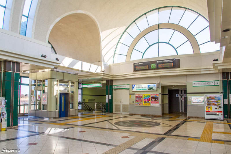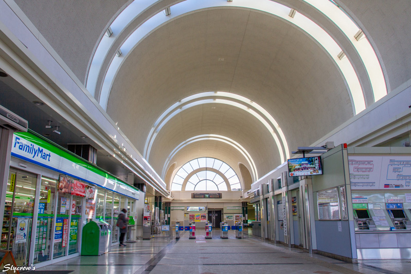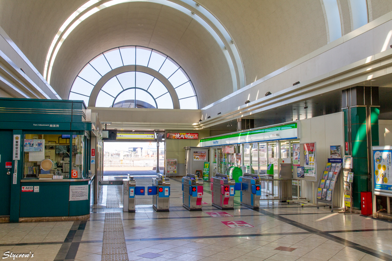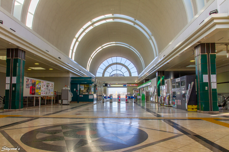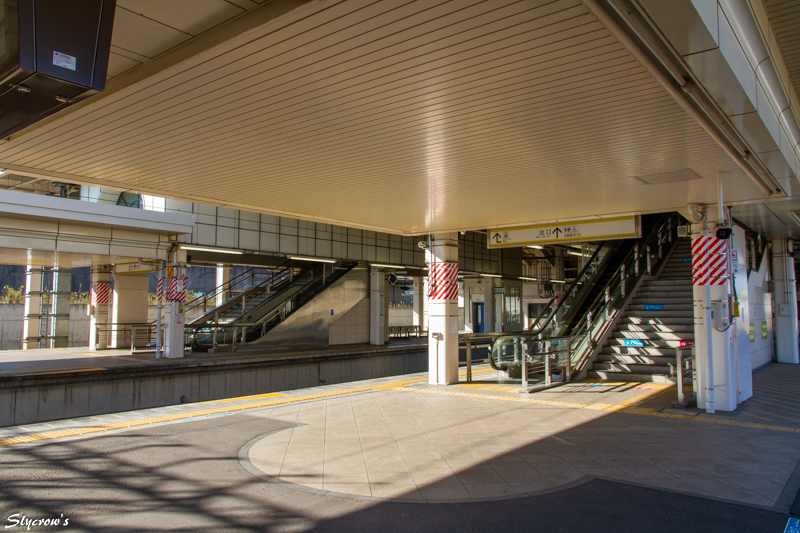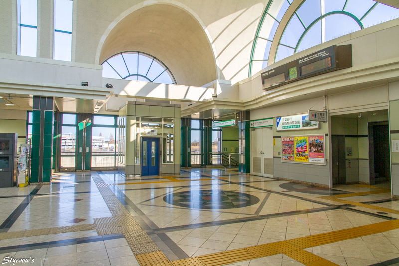 橋上駅舎。一日の乗車人員は7,996人(2023)で、2000年当時の4,027人から、期待していたほどの増加は得られていない。1995年開業当時の利用客は3,083人(降車含む)だった。