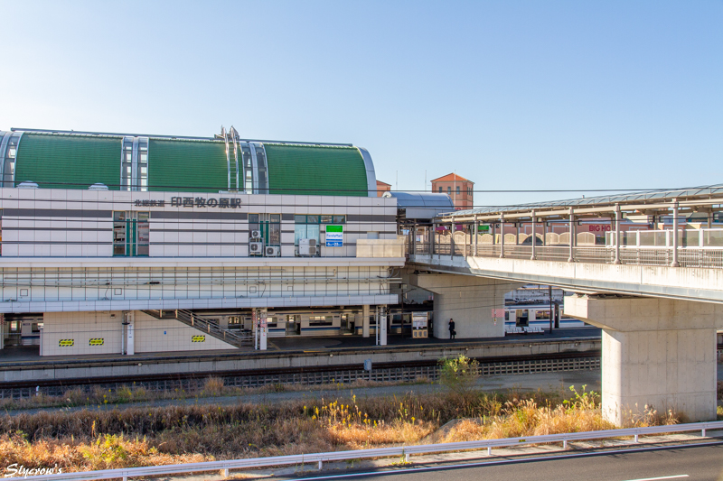 次駅は印旛日本医大で3.8km東に。成田スカイアクセスと呼ばれるこの路線は、次駅から先の第三種鉄道事業者は成田高速鉄道アクセスとなる。