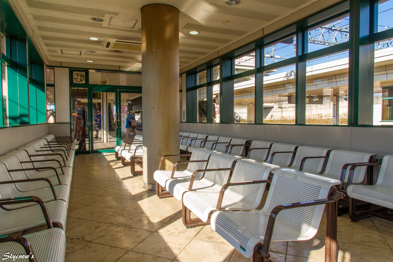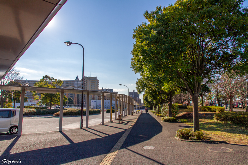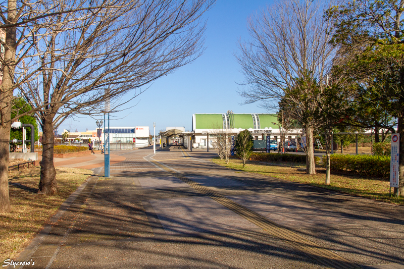 ロータリーを駅舎方向にむかって。こと駅前に関して言えば、開業当時よりほとんど変化はない模様。