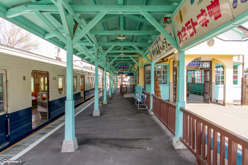 開業は1921(大正10)年。上田温泉電軌・川西線の終着駅として。駅構内東側には「丸窓電車」で親しまれた、モハ5250形電車が保存されている。