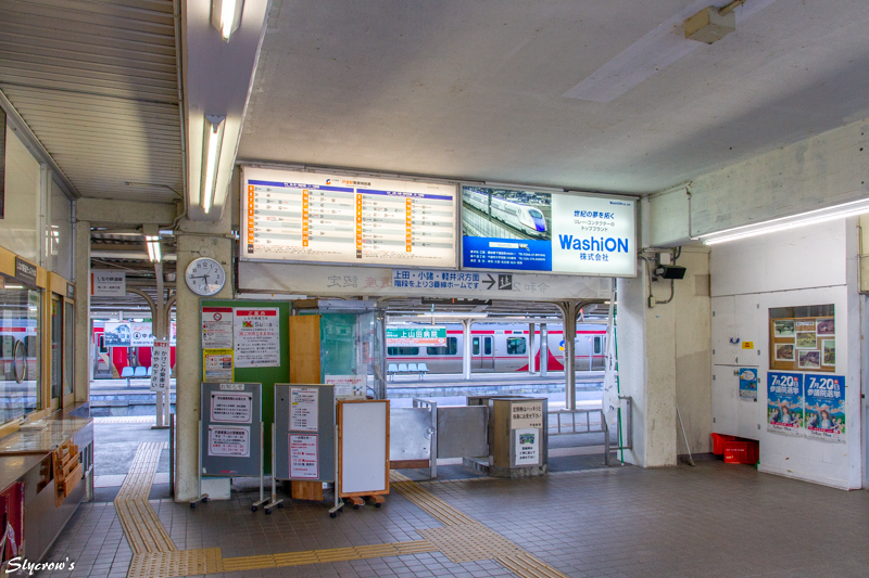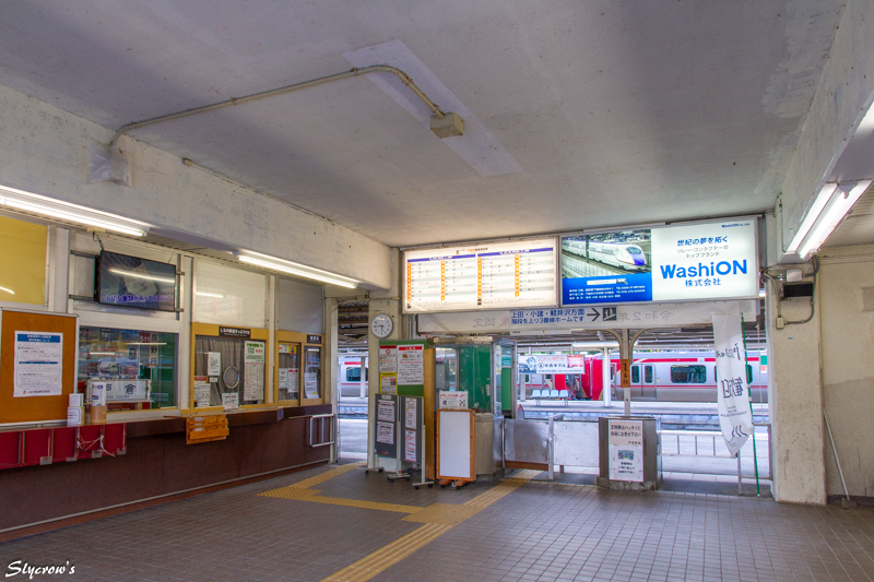 ホームはいわゆる「国鉄型配置」の2面3線構造。西側(駅舎側)が1番、跨線橋を渡った島式ホームが2,3番ホーム。2番ホームは当駅始発列車が使用する。始発電車は下り長野行き5:21当駅始発、最終は23:46発軽井沢行き上り。午前中に1本/時の時間帯があるが、以外は2~3本/時の運行。