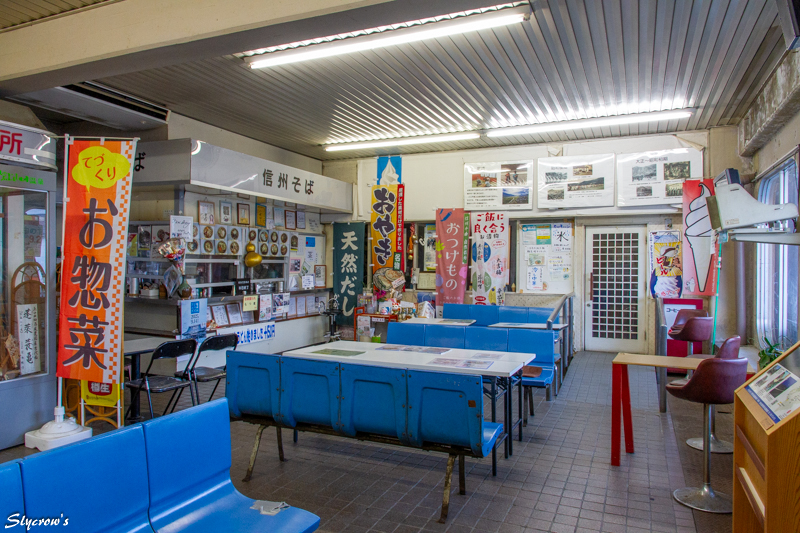 他路線に接続する軽井沢、上田、篠ノ井を除き、駅構内に飲食を提供できる店舗があるのは屋代と当駅のみ。当駅には2店舗が置かれる。