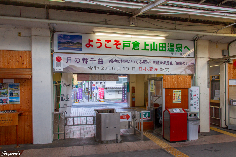 千曲川を挟み戸倉温泉、上山田温泉と新戸倉温泉とがあり、当駅よりバスやタクシーで10分ほど。湯治より遊興的雰囲気の強い温泉街、とのこと。なるほど悪くない(笑)。東京からは新幹線で上田乗り換えがわかりやすい。