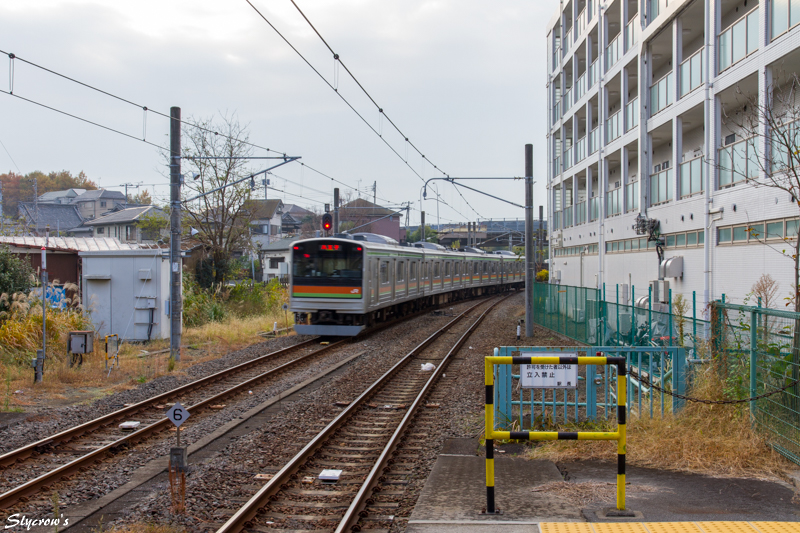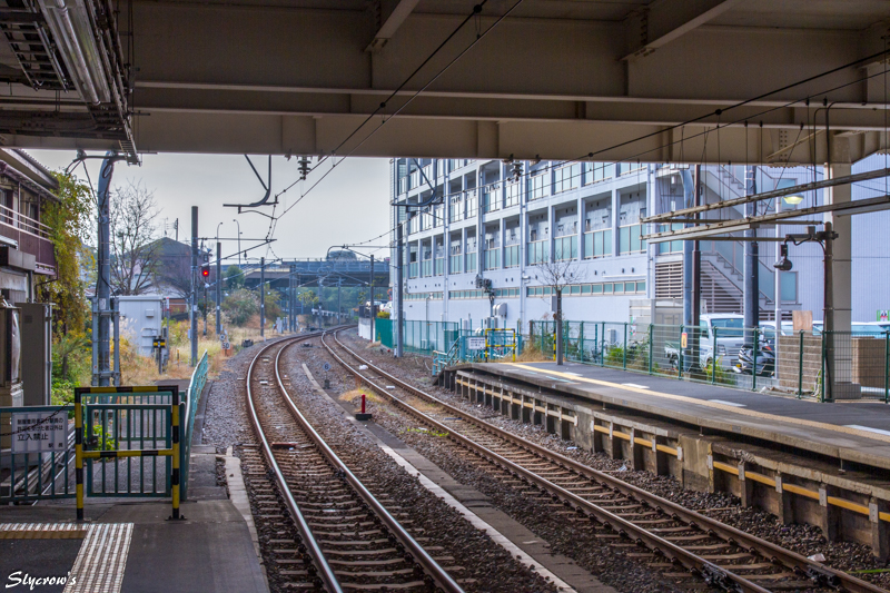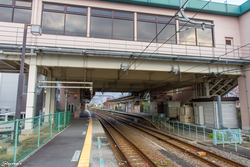 1977(国土地理院 地図・空中写真閲覧サービス CKT771 C26 10 を加工)わずかな平地に肩を寄せ合うように家々が立ち並ぶ。そんな中に当駅と極楽寺検車区(車両基地)がある。45年前の写真と現在と比べ、どこが異なるのか、探し出すのが容易ではない(笑)。