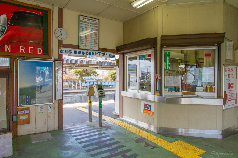 駅員配置駅だが、日中のみの日勤駅。2019(平成31)年に正面左側に新駅舎が完成し、写真の旧駅舎は「モニュメント」扱いだが現在も現役。