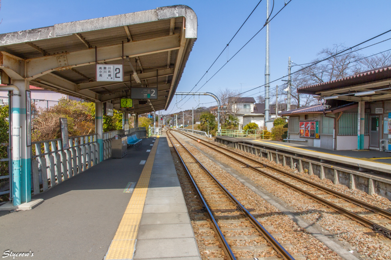 次駅は稲村ヶ崎で0.8km西に。駅を出て左手すぐに極楽寺検車区があり、22時台に当駅終着の電車が1本ある。