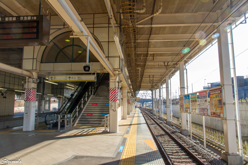 掘割状の地平ホームで、南側の1,2番ホームは上り小室方面。内側の2番が待避線となる。平日上りで7時台は10本の電車があるが、11時、13時は2本のみ。21時台には遠く三崎口行きも。