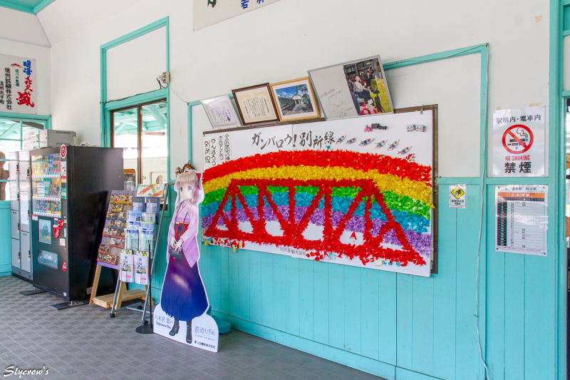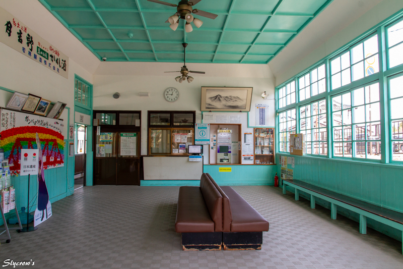 駅舎が現在の外観になったのは1950(昭和25)年。旧・上田丸子電鉄時代の社紋が残る。2022(令和4)年に無人化したが、窓口でのグッズ販売は無人後化も継続しておこなわれている。
