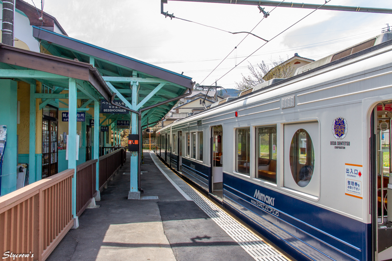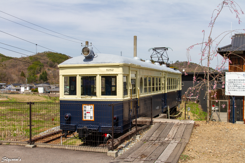 開業は1921(大正10)年。上田温泉電軌・川西線の終着駅として。駅構内東側には「丸窓電車」で親しまれた、モハ5250形電車が保存されている。