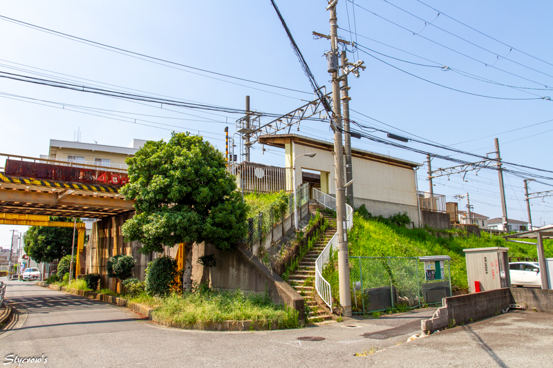南海高野線をオーバーパスするために高さを稼ぐ、盛土上に停留場が置かれる。最寄駅は住吉東で、南に200mほど。