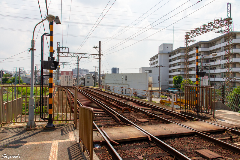 逆サイドの北側から南海高野線と跨線橋方向を見る。