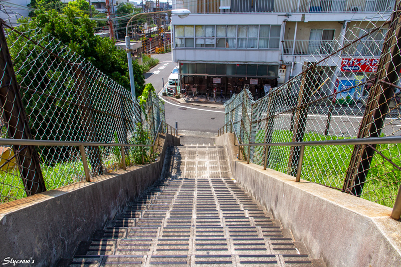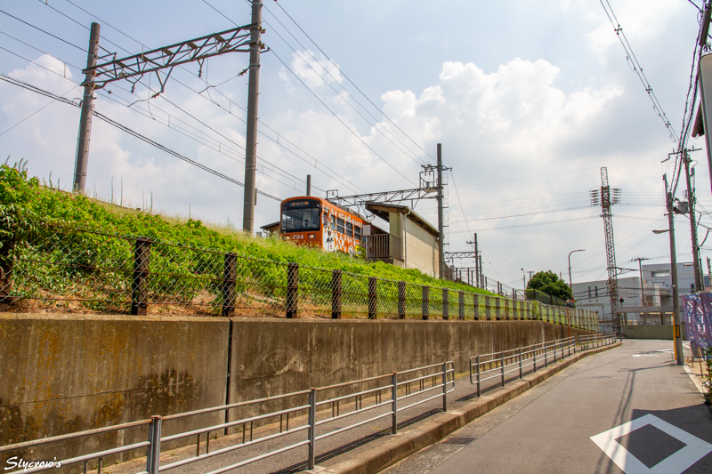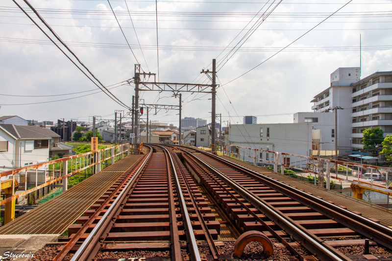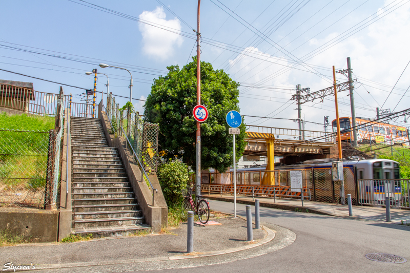次停留場は帝塚山四丁目で0.4km先。すぐに南海高野線を跨線橋でオーバーパスする。南海高野線もこの跨線橋をくぐるために、付近はやや下り勾配となっている。