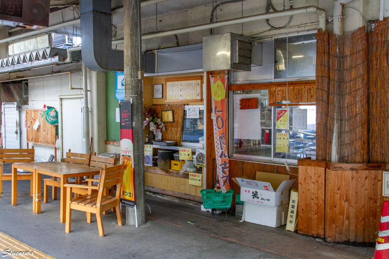 他路線に接続する軽井沢、上田、篠ノ井を除き、駅構内に飲食を提供できる店舗があるのは屋代と当駅のみ。当駅には2店舗が置かれる。